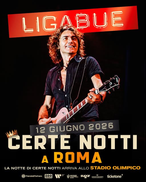 Ligabue Certe Notti a Roma 2026 – Dopo aver infiammato l’RCF Arena di Reggio Emilia e la Reggia di Caserta, Luciano Ligabue annuncia un nuovo appuntamento a Roma nell’ambito del Tour La Notte di Certe Notti.