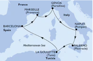 Imbarco sulla nave MSC CROCIERE : EURIBIA e partenza dal porto di Napoli alle ore 20:00.